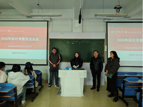 为保障2023级、2024级视觉传达设计班学生成都设计考察行程安全、顺利,完美体育官网于10月21日上午在艺术楼307教室召开2025年设计考察安全会议。学院副院长董建义,带队老师郑蔚、刘文忠、郑曼璐及班主任杨琳参会。