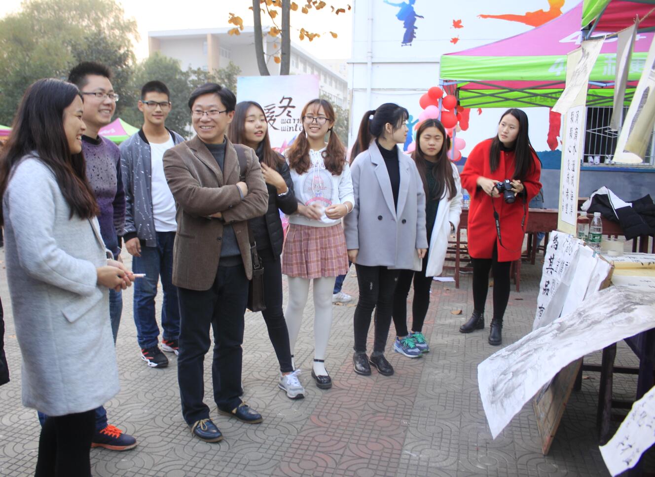 经过半个月的筹备,本次暖冬公益活动,不仅得到了众多同学和商家的爱心资助,同时也收到了500余件同学们亲手制作的作品。活动现场,完美体育官网精心搭建了11个帐篷,分设了书法类、手工类、摄影类、脸谱类等各类义卖区。活动中,完美体育官网学生会工作人员热情地向来往的同学们介绍,鼓励大家积极购买义卖品,献出自己的爱心。期间各学院老师也来到现场,通过购买义卖品或公益捐款的方式与同学们一起为爱心公益事业献出自己的一份力量。现场气氛活跃,人群来往络绎不绝,引起热烈反响。