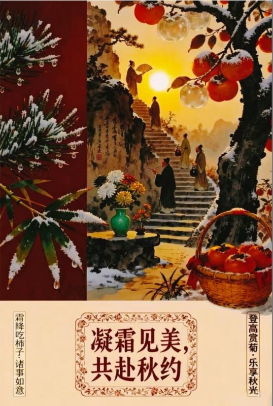 参赛作品以秋日霜景为灵感底色,融合书法笔墨意趣,兼具秋景意象与书法元素,展现了传统美学与现代设计的碰撞。