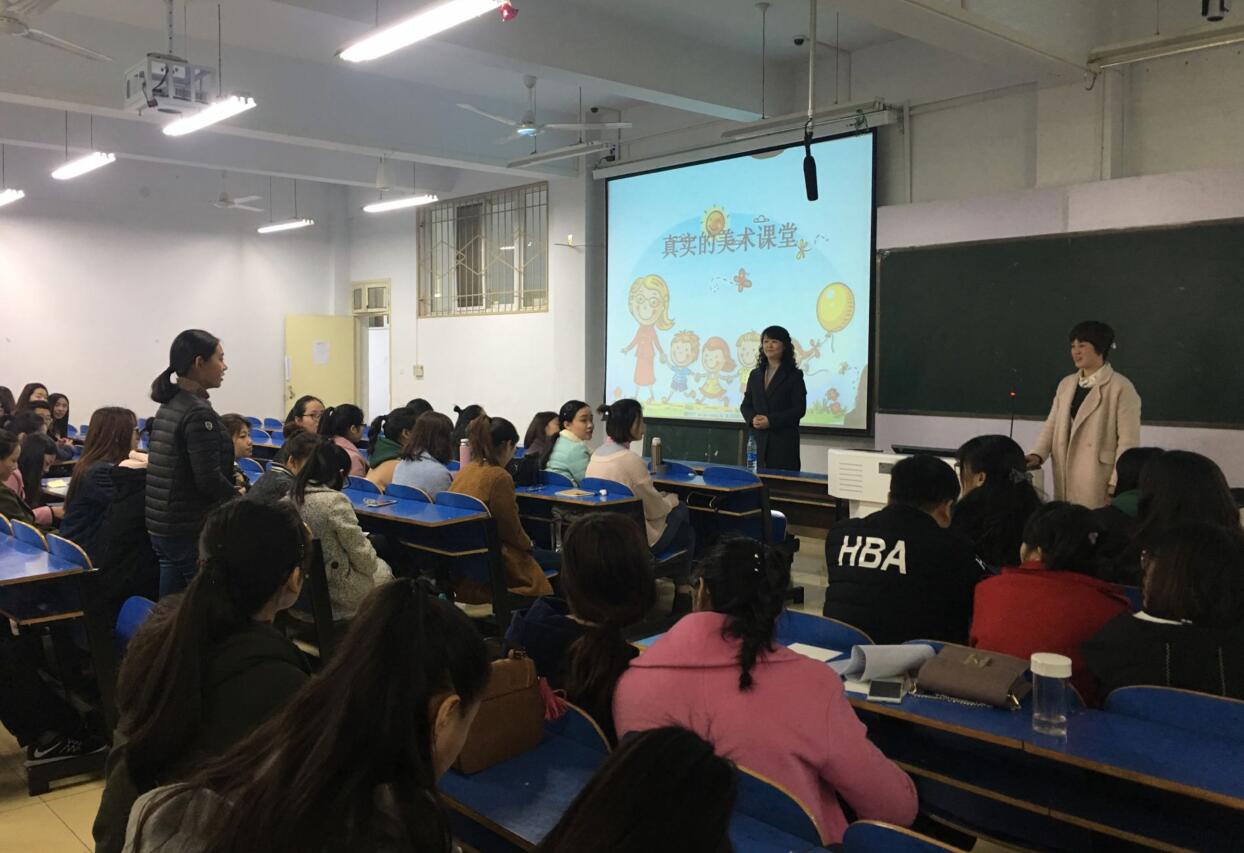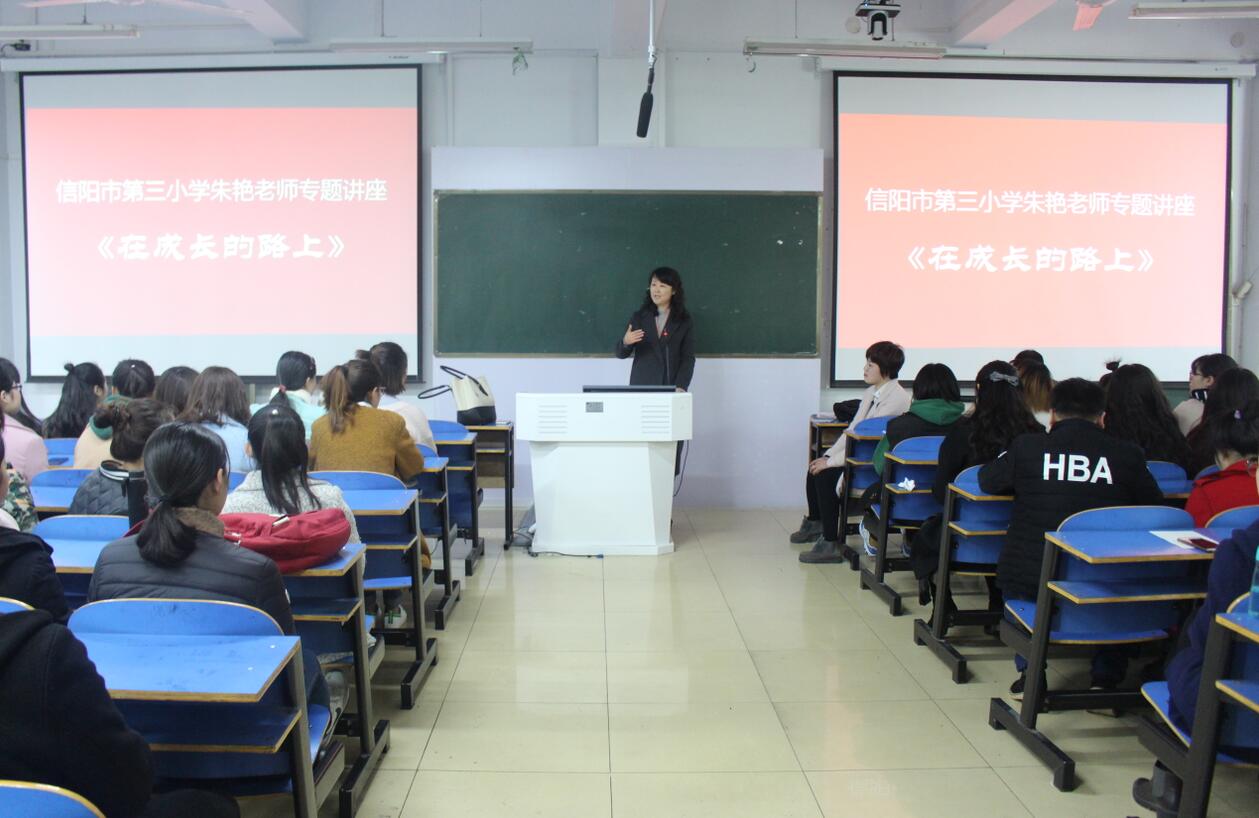 3月15日上午,应完美体育平台官网邀请,信阳市第三小学教师朱艳在艺术楼307室开展题为“在成长的路上”专题讲座,完美体育官网副院长涂湘东与百余名学子共同聆听了讲座,讲座由涂湘东主持。